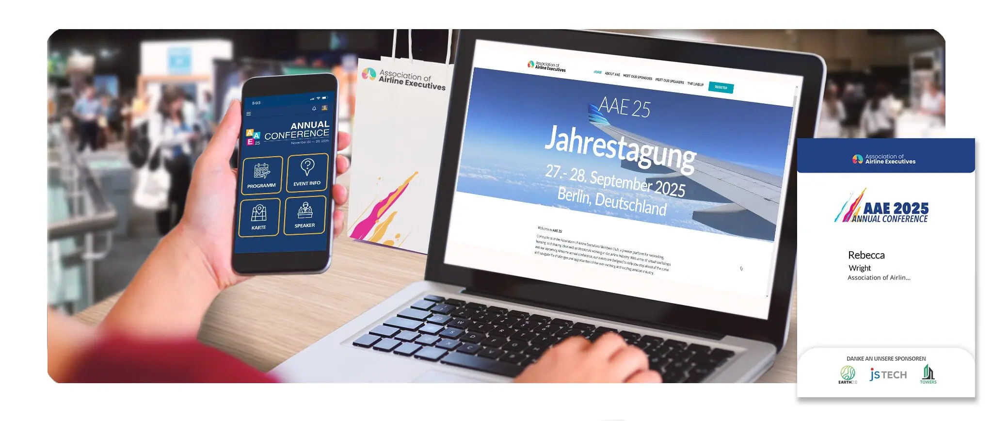 - Ihr Event erinnerungswürdig gestalten – Vom Logo auf den Event-Badges bis zur Ausstattung der Halle, in der sich Ihre Partner präsentieren: Ihre Marke prägt die Erinnerungen.